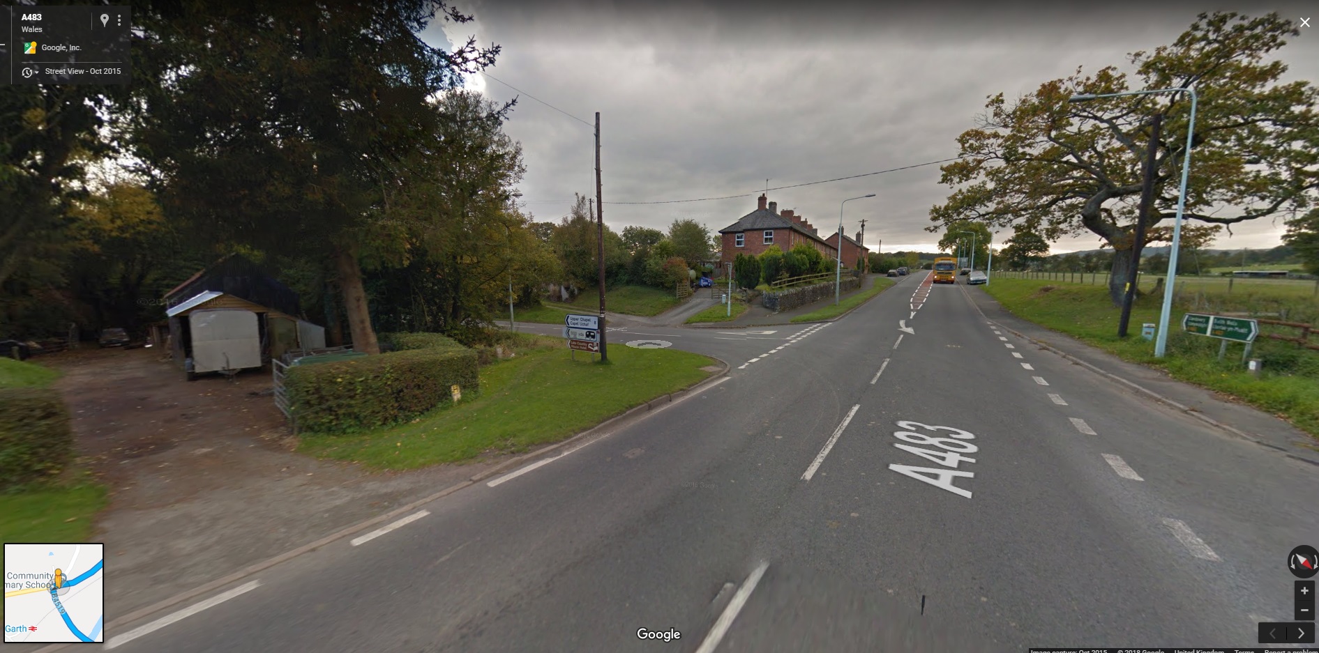 After this bend, just keep going along this road (ignore any Sat Nav, Google Maps instructions to the contrary trying to turn you right). The B4250 (Market Street) will become the A483, the staging road, towards Garth and the return southbound.