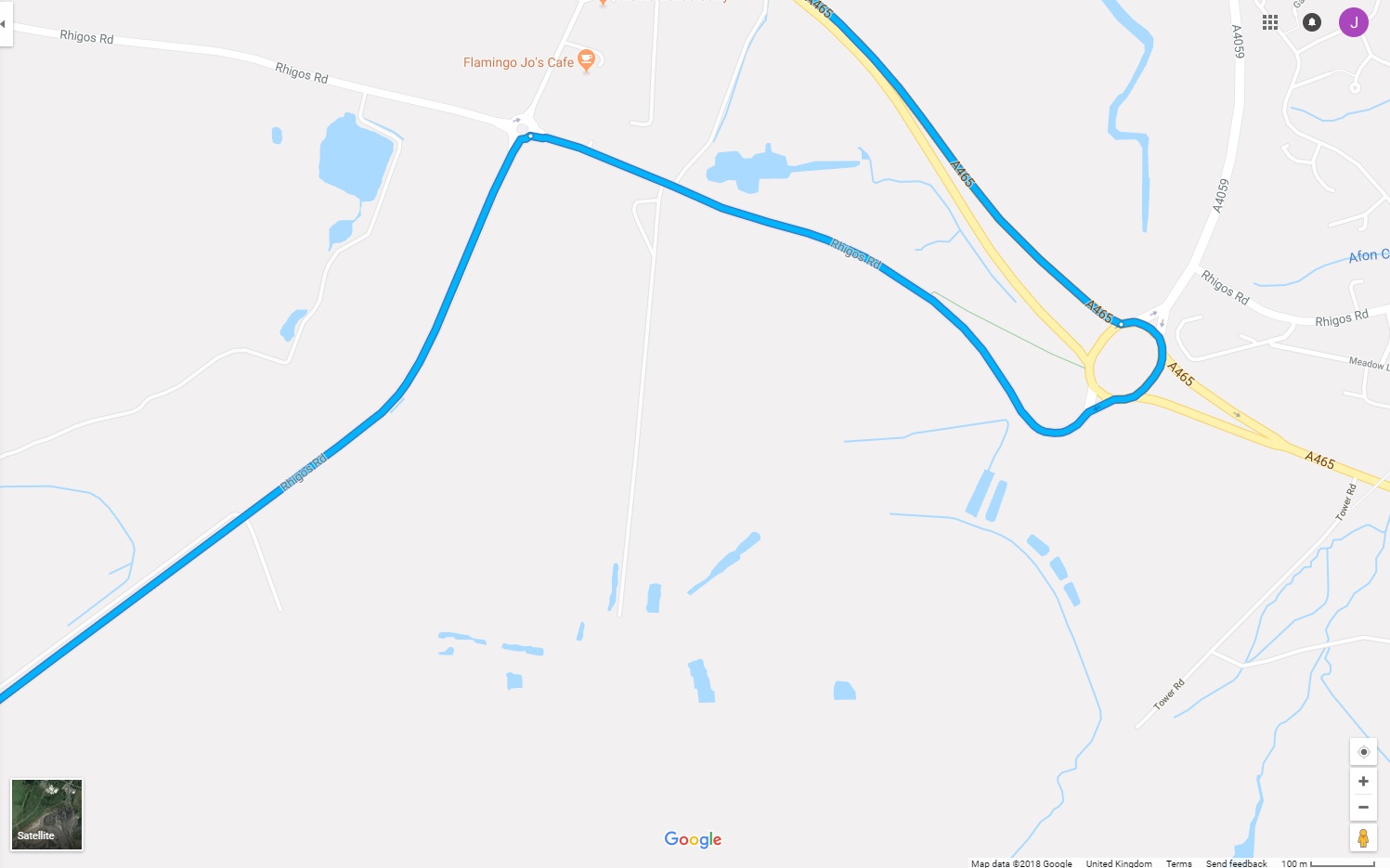 This is the same route as outbound with the exception that we will be turning north west, onto the A40, at the roundabout (as shown below).